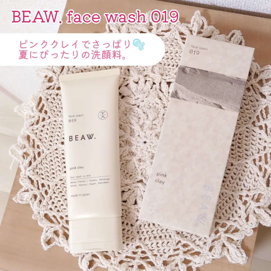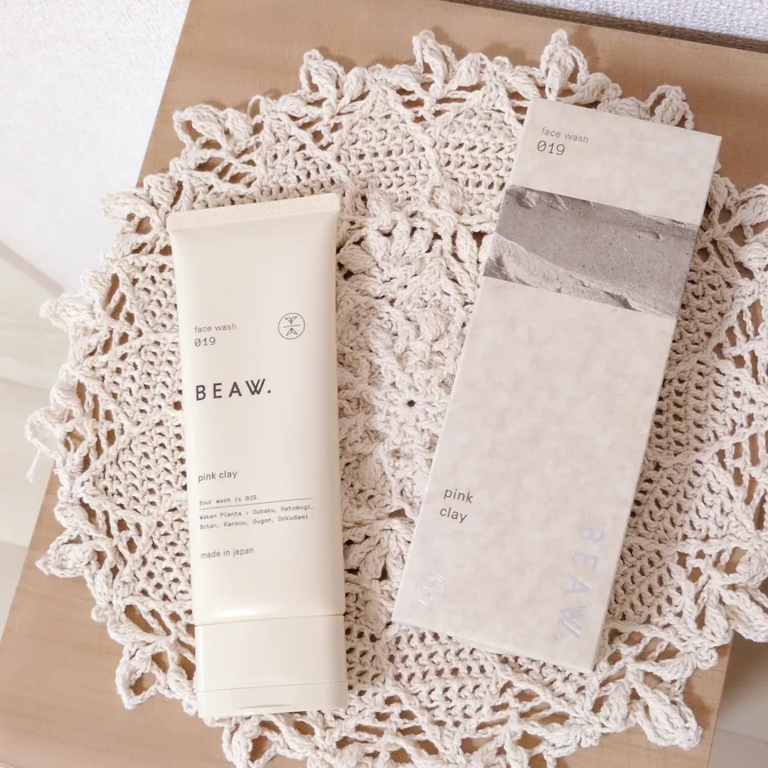 「BEAW. face wash 019」は、ピンククレイを使った洗顔料で、和漢由来成分や植物エキスを配合しています。
