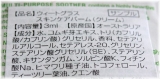 (成分)水、コムギ芽エキス、トリ(カプリル酸/カプリン酸)グリセリル、香料、セテアリルアルコール、セテアレス‐20、グリセリン、ステアリン酸グリセリル(SE)、ステアリン酸、キサンタンガム、ソルビン酸K、フィチン酸Naと水、ヒマワリ種子油、トコフェロール、ティーツリー葉油、クエン酸