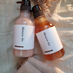 自然素材と馬油素地で地肌と髪を整える石けんシャンプーとコンディショナー。