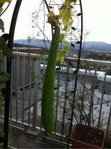 1.黄色くなった頃か、軽くなってきた頃にヘチマを収穫します。