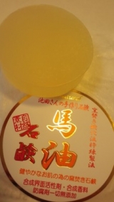 石鹸の基となる油脂には、人間の皮脂の成分にもっとも近い馬油を100%使用しています。その為、化学薬品を使わなくてもお肌にとても浸透しやすく、しっとりうるおいを与え、健やかに保ちます。