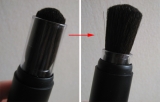 ポーチに入るサイズなので持ち運びに便利です ブラシが広がらないように、カバー付きこれなら急いでキャップをするときも安心 説明には「一見ただのブラシなのですが、実はこのブラシには、“Shimmer = キラキラ輝く“ パウダーが内蔵されていますブラシで優しくひとはけすると、ブラシの隙間からキラキラ… 2011/05/13