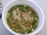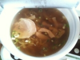 鶏油(チーユ)の香りが特徴の澄んだ醤油味のスープです。