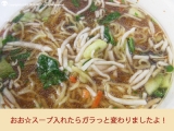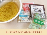 粉末スープ+液体スープの2包材タイプの中華風醤油味スープ。