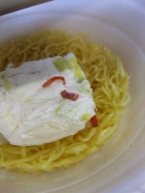 ねぎブロック(短冊切りネギ、輪切り唐辛子)、おろしにんにくペースト