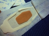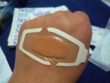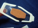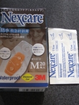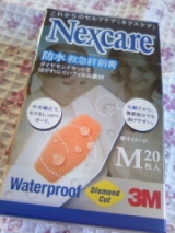 3Mから出てる【ネクスケア 防水救急絆創膏】使ってみましたよ真ん中が幅広くなっていて普通の絆創膏とは違ったイマドキのはがれにくそうな感じの形状です 2011/06/07