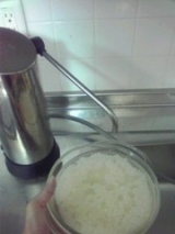 先日、富士山を初めて訪れた私 どうしても、富士山でおにぎりが食べたいと 朝早起きして、ゴソゴソと炊飯の準備 まずはすりきりでおコメをしっかり計ります! 我が家の場合は1回に付き3合炊きます♪ 始めは大目のお水で、軽くかき混ぜてすぐに捨てます おコメを掴むように、すりあわしながらリ… 2010/10/19
