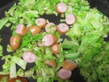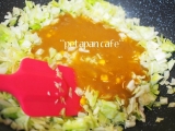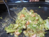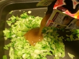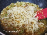炒めたキャベツと合わせて、流して焼くだけで簡単にもんじゃ焼きが出来上がります。