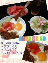 ママブロネタ「晩ごはん」からの投稿 暑さにやられてますいや朝と夜の寒さそして昼間の真夏のような炎天下なのに数日おきに、熱帯夜もう子供のパジャマにも迷う半袖かいや長袖かクローゼットから出したり、しまったりどないやねんというわけで、体がクタクタの今日この頃本日は夏バテ防止メニューダウンし… 2014/05/27