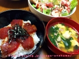 こんにちは 昨日は、鰹が安かったので漬け丼にしました 鰹の漬丼ほうれん草と卵の和風スープ生ハムと具沢山サラダしいたけとひき肉の詰め物(昨日の残り) しめじは、めんつゆと一緒にレンジでチン♪ アボガド、きゅうり、トマト、サニーレタス、生ハムが入っています 以前、頂いた… 2015/03/26