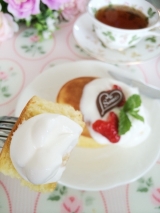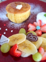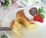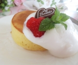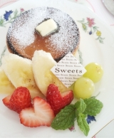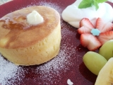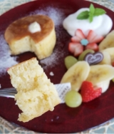お食事、デザート、どちらでも合う甘さひかえめふんわり食感のパンケーキ。