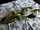 日本きらりさんの新潟県より「笹だんごセット(つぶ餡味噌餡黒ゴマ餡 各5個入り) 」のお届け物 それぞれ色違いのシールが目印になっています みそ餡黒ごま餡つぶ餡 休日のおやつに息子と3種類を半分ずついただきました 冷凍で送られてきているので、レンジで温め、少し冷やして笹を剥がしていくと、きれ… 2014/12/16