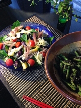 8月最後のお休みの日、暑かったテニスから帰っての晩御飯結構疲れて思考能力ゼロビールを呑んで寝ちゃいたいところだけど〜夕飯食べるよね??? み「つるつるのおうどんにしよ茄子の煮たのと揚げたの、どっち?」 ち「揚げたの」 み「いんげんは?」 ち「食べるっ!」 み「あとは枝豆ね」この春から夏にかけ… 2015/08/31