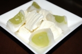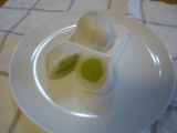 今日のデザートは楽しみにしていた、 シャインマスカットが丸ごと一粒!フルーツ大福【雪みどり】heart+kira 上品な箱に入っています!! 金箔が乗ってるんですよ!!(´▽`) 大きさはこのくらい分かるかな? カットしてみた… 2013/11/15
