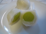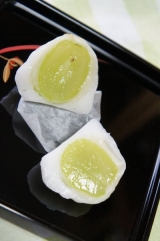 「シャインマスカット」と聞いてピンとこない私、どんなマスカットなのだろう???と思い調べてみると、糖度が高く渋みがないという事で、フルーツ好きの私にはもってこいのフルーツそしてそんな美味しそうなフルーツがこれまた大好きな大福に入っているなんて夢のコラポだわ是非お抹茶と一緒に食べてみたいなぁ… 2013/10/10
