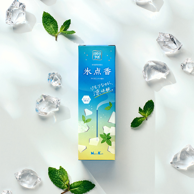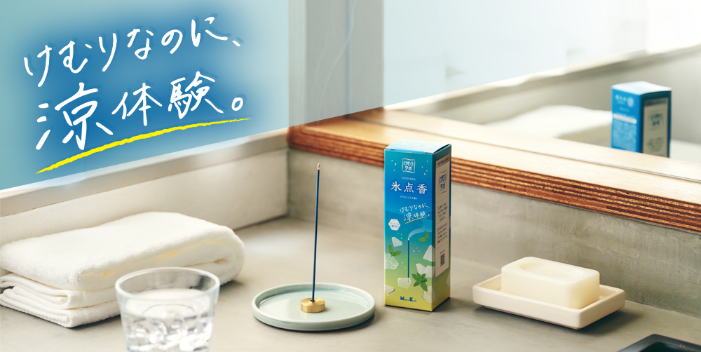 氷点香(ひょうてんか)は、メントール配合の涼やかな香りが「けむり」にのって、お部屋の隅々まで広がります。