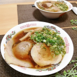 【原材料】原材料:麺(小麦粉、全卵(さくら卵),かん水、食塩)具入りスープ(鶏ガラ、豚骨、鶏脂、豚肉、メンマ、醤油、鰹節、煮干、昆布、椎茸)(一部に小麦・卵・豚肉を含む)