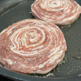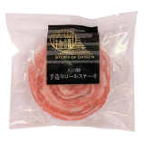 大山物語の国産大山豚を使用した「大山豚手造りロールステーキ」です。鳥取産の大山豚は肉質がきめ細かく柔らかで豚本来の旨味にも富んでいます。日本ギフト大賞2019鳥取賞を受賞しました。極薄にスライスし1枚ずつ丁寧に並べ、まきすで綺麗なロール状に仕上げていますので、お箸でも切れる柔らかさです。調理方法も簡単ですので、幅広い年齢層の方に美味しくお召し上がりいただけます。