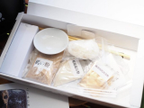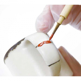 【数量・内容】小皿×1、綿棒(1袋)、真綿(1袋)、説明書、練弁柄漆×15g、金継ぎ用生漆×15g、砥の粉×50g、耐水ペーパー#600(10cm)、練習用代用金粉×10g、プラペラ35mm×1、面相筆(小)×1、あしらい毛棒(小)×1、ゴム手袋×1、純金平極粉×0.2g、鳴滝砥石粉×10g