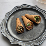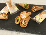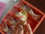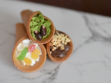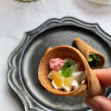 藤兵衛庵の「お菓子 ぶぅけ3種セット」です。京せんべい藤兵衛庵のせんべい職人が1つ1つ手作業で作り上げた花束形のかわいい焼菓子です。人気の3種(フルーツ・チョコ・抹茶)を詰め合わせてお届けします。 【フルーツ】レモン風味のバニラクリームにイチゴ・マンゴー・キウイ、3種のドライフルーツをトッピングしました。 【チョコ】濃厚チョコクリームを絞りました。トッピングにはアーモンドダイスを使用。チョコとアーモンドの間違いない組み合わせにおせんべいが見事にマッチ。 【抹茶】花束の形のおせんべいに京都・宇治の抹茶を使用したクリームとドライ小豆をトッピングしています。和の花束をイメージしており、京都らしさ溢れる逸品です。 【藤兵衛庵】大正11年に京都で創業以来、90年以上せんべいの製造一筋で今に至ります。昔からの製法と伝統を受け継ぎ、厳選した原料を使用し、ひとつひとつ丁寧に心を込めてお菓子を作り続けています。