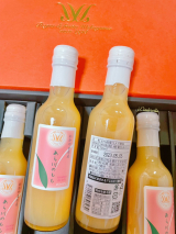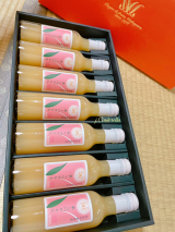 「あら川の桃60%果汁入りドリンク」の200mlを7本詰め合わせたギフトセットです。太陽を浴びて育った紀の川市桃山町の「あら川の桃」を惜しげもなく使用し、果実感あふれる仕上がりです。手作業で桃をカット、ピューレ状に裏ごし、搾汁をしますので桃の香りや風味を損なうことなく、とろりとした舌触りに仕上げております。また、贅沢に60%の桃果汁を使用しておりますので桃の実をそのまま食べたような果実感、またほどよい甘さと香りですっきりとした後味で上品な余韻をお楽しみいただけます。