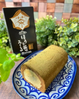 ながた茶店の「大山の香り ろ~るセット」です。鳥取県大山町の抹茶・大山の白とほうじ茶を使用した2種類のロールケーキです。しっかりとした食感の生地に濃厚なクリームをやさしく巻きました。