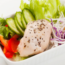 uchipac(ウチパク)自慢の一品!国産鶏サラダチキンのブラックペッパー&ガーリック味です。国産のにんにくを香りづけに使用しました。無添加、長期保存可能です。
