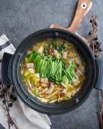 東京ラーメンショーV5達成「麺家いろは」監修の「塩もつ野菜鍋 白エビだし ラーメン入り 鍋セット」(2~3人前)です。白エビの上品な旨みの塩味スープで食べるもつ野菜鍋をご家庭で手軽に味わえます。こだわりの具材が全て揃っていますのでプロの味を再現できます。追加でお豆腐を入れていただいても美味しくお召し上がりいただけます。