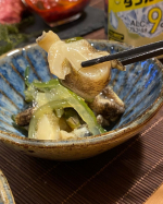 【原材料】ツブ(アヤボラ(北海道産))、わかめ茎、みりん、砂糖、わさび茎、食塩、還元でん粉糖化物、しょうゆ/香料、増粘剤(キサンタンガム)、調味料(アミノ酸)、(一部に小麦・大豆を含む)