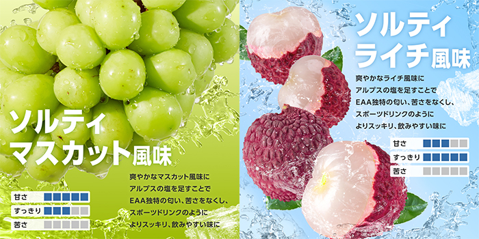 ソルティマスカット風味とソルティライチ風味があるので、気分によって選べるのもうれしい!
