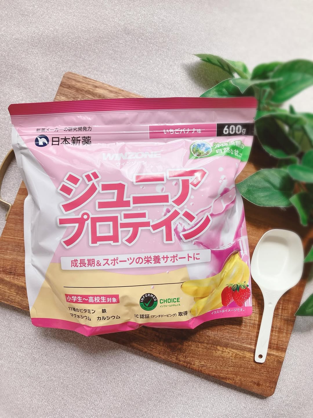 製薬会社目線で子どもの成長を考え抜き開発したプロテイン たんぱく質をはじめとした成長期の子どもに必要な栄養素を一杯に濃縮! 香料・甘味料・白砂糖を一切使わず、たんぱく質原料においても赤ちゃん用の粉ミルクに使用される高品質な原料を使用しています。 成長期の子どもの栄養バランスを考え、1杯で手軽な栄養補給を可能にしました。創立100年以上の製薬会社の技術を集約した高品質プロテインです。 食品添加物の香料や甘味料を一切使用せず、自然の素材そのままの美味しさを追求しています。お子さまが笑顔になるやさしい味わいを大切にし、香料・甘味料の代わりに、濃厚で風味豊かないちごパウダーやバナナパウダー、南国の太陽の恵みを受けて育った沖縄・多良間島産サトウキビ由来の純黒糖を加え、自然な味わいに仕上げました。