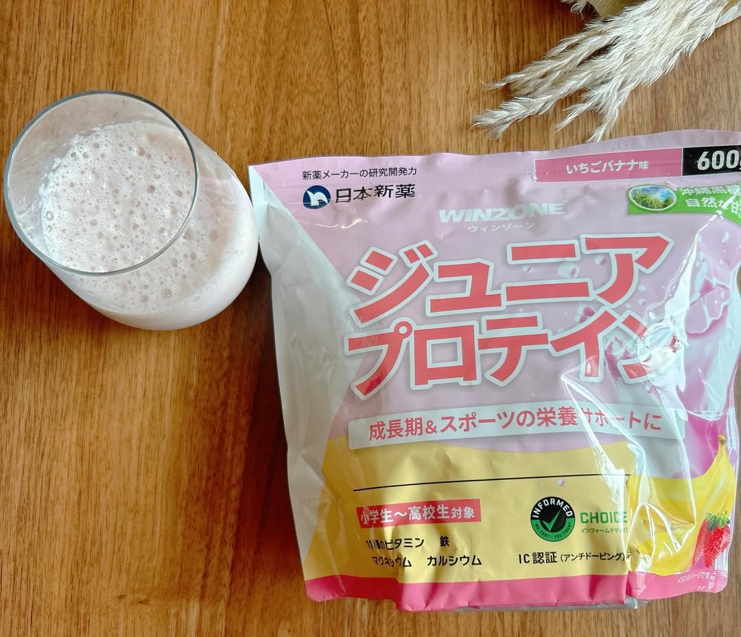 製薬会社目線で子どもの成長を考え抜き開発したプロテイン たんぱく質をはじめとした成長期の子どもに必要な栄養素を一杯に濃縮! 香料・甘味料・白砂糖を一切使わず、たんぱく質原料においても赤ちゃん用の粉ミルクに使用される高品質な原料を使用しています。 成長期の子どもの栄養バランスを考え、1杯で手軽な栄養補給を可能にしました。創立100年以上の製薬会社の技術を集約した高品質プロテインです。 食品添加物の香料や甘味料を一切使用せず、自然の素材そのままの美味しさを追求しています。お子さまが笑顔になるやさしい味わいを大切にし、香料・甘味料の代わりに、濃厚で風味豊かないちごパウダーやバナナパウダー、南国の太陽の恵みを受けて育った沖縄・多良間島産サトウキビ由来の純黒糖を加え、自然な味わいに仕上げました。