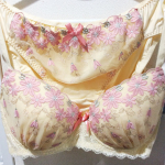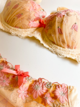 立体感のある花柄刺しゅうが印象的なブラジャー・ショーツセット。