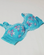 小花柄刺しゅうの愛らしいブラ。幅広の脇高設計で気になる段差をガードして脇すっきりシルエットに。バックベルト上辺は折り返し仕様でくいこみを軽減。カップ上辺の三角パーツでバストトップも高く引き上げます。