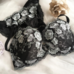 洗練された刺しゅうレースが美しいブラジャー・ショーツセット。