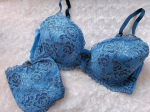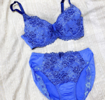 2色の日本製ストレッチレースをふんだんに使用したぜいたくでお買い得なブラジャー&ショーツセット(ショーツのバックレースのみ中国製)。