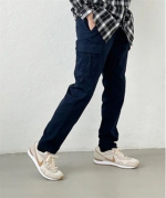 カーゴパンツの特徴であるサイドポケットがデザインのアクセントとなり、休日のカジュアルウェアとして活躍します。