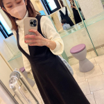 バストを強調せず、スッキリ細見えを叶えるジャンパースカートです。