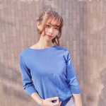 旬のボートネックに、合わせやすい袖丈の七部袖セーターです。