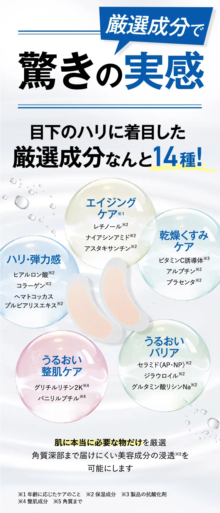 *1:保湿成分 *2:製品の抗酸化成分 *3:うるおってハリ感のある肌