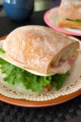 バターをたっぷり塗ったバゲットにカントリーローストとチーズ。