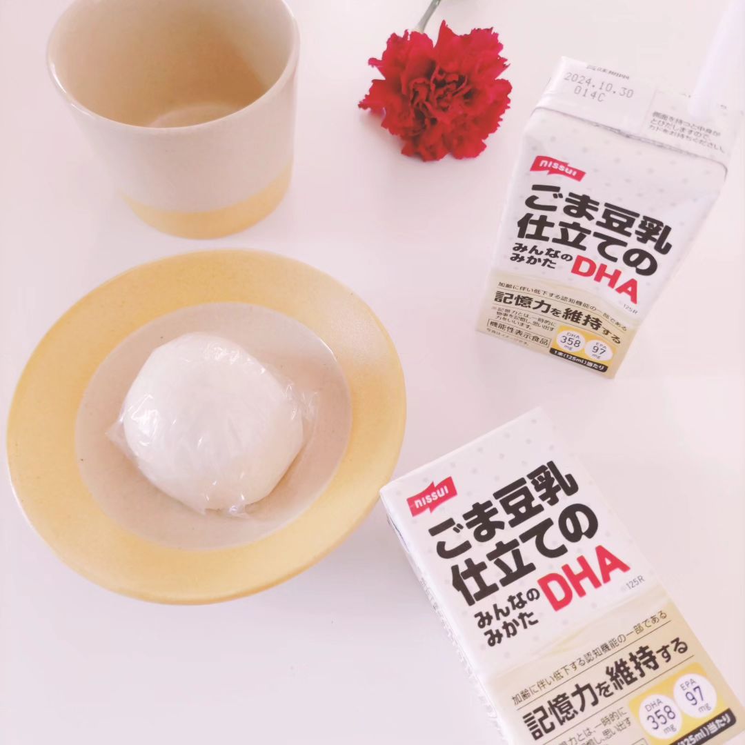・中高年の方の加齢に伴い低下する認知機能の一部である記憶力を維持することが報告されているDHA・EPAを1本に455mg配合。 ・豆乳と黒ごまのコクと香ばしさ、はちみつの甘みがするドリンク。 ・1日1本目安。 ・常温保存。 ・冷やすとより一層おいしくお召しあがりいただけます。 ・通信販売限定商品。 ※本品は機能性表示食品です。(届出番号:G966) ※届出表示:本品にはEPA・DHAが含まれます。EPA・DHAには、中高年の方の加齢に伴い低下する、認知機能の一部である記憶力を維持することが報告されています。※記憶力とは、一時的に物事を記憶し、思い出す力をいいます。 ※本品は特定保健用食品と異なり、消費者庁長官による個別審査を受けたものではありません。 ※本品は疾病の診断、治療、予防を目的としたものではございません。 ※食生活は主食、主菜、副菜を基本に、食事のバランスを。 ※乳成分、ごま、大豆アレルギー体質の方は飲用をお控え下さい。 ※はちみつを使用していますので、1才未満の乳児には飲ませないでください。