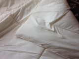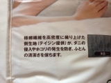 ●極細繊維を高密度に織り上げた側生地(テイジン提供)が、ダニの侵入やホコリの発生を防ぎ、ふとんの清潔さを保ちます。