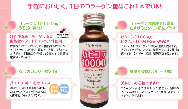 お肌の為にコレ飲んで寝ますよ コラーゲンの専門店ニッタバイオラボさんの… 濃厚コラーゲンドリンク「ハピコラ10000」 コラーゲンのニッタバイオラボファンサイト応援中 ◆コラーゲン10,000mgでうるおい実感! 1本でたっぷり1日分のコラーゲン 特許取得のコラーゲン由来機能性ペ… 2012/01/19
