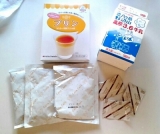 【杏仁豆腐の素】 砂糖、脱脂粉乳、コラーゲンペプチド、粉末油脂(大豆を含む)、ゼラチン、寒天、杏仁霜、香料
