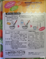 【カスタード風味プリンの素】 [プリンの素]砂糖、コラーゲンペプチド、ゼラチン、脱脂粉乳、粉末油脂(大豆を含む)、寒天、香料、カロテン色素 [カラメルソース]砂糖