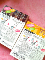 【コーヒーゼリーの素】 砂糖、デキストリン、コラーゲンペプチド、粉末コーヒー、ゼラチン、乳化剤(大豆、乳成分を含む)
