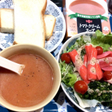 忙しい朝は、お湯を入れるだけで手軽に作れるスープがあると嬉しいですね この日は、塩パンとオムレツ、サラダに、トマトクリームスープ そして、こっちはプチチョコクロワッサンと茹で卵、ごぼうサラダに、コーンクリームスープ 美味しくニッタバイオラボ様の手軽にコラーゲンが摂れる「コラカフェシリ… 2020/11/21