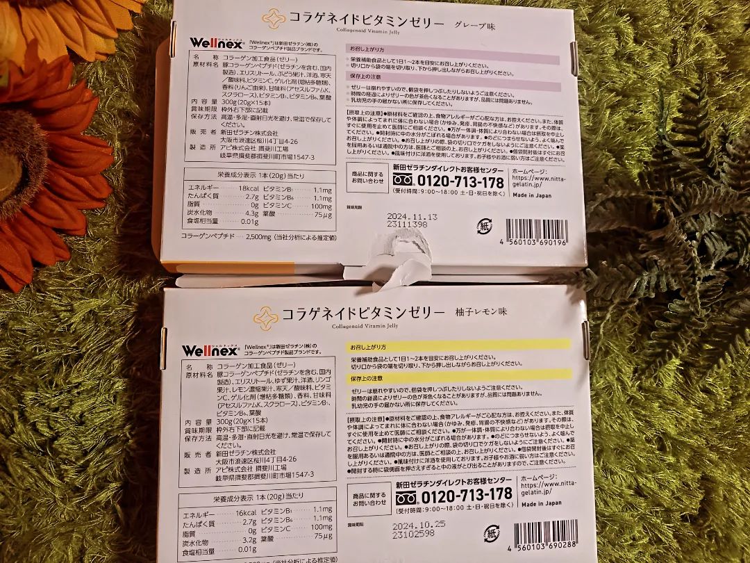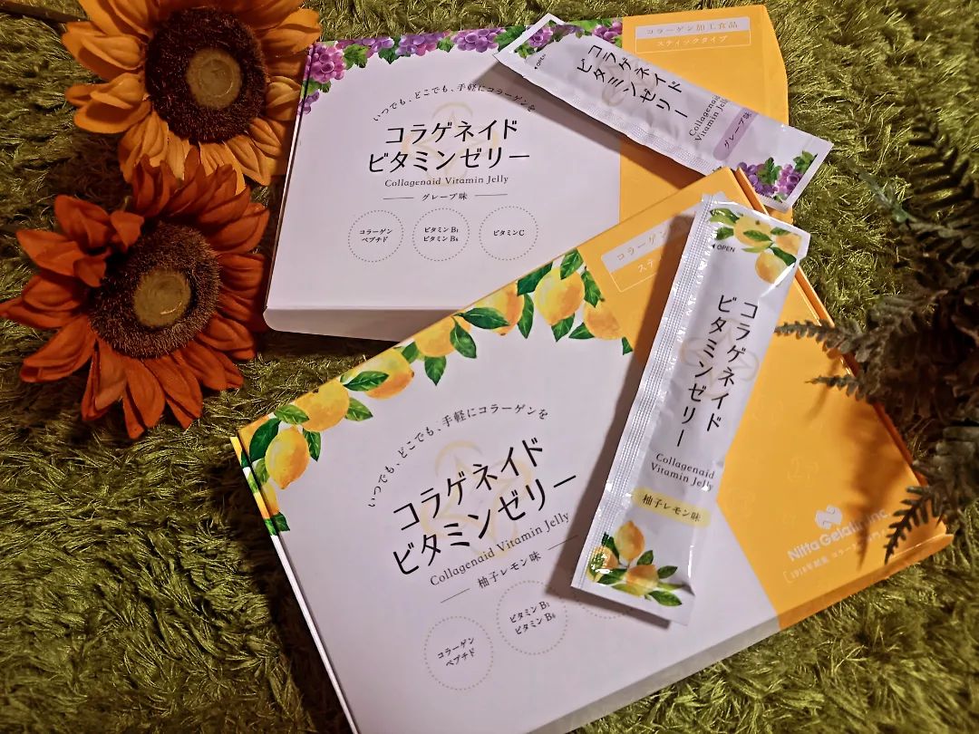 【コラゲネイドビタミンゼリー〈グレープ味〉・コラゲネイドビタミンゼリー〈柚子レモン味〉】それぞれ1箱(20g×15本)をのんでみたよ おやつ感覚でコラーゲンが摂れるコラゲネイドビタミンゼリー 1日1~2個、食べます グレープ味と柚子レモン味の両方ともコラーゲンの独特な味を感じる事なく美味しく食べられました 柚子レモン味はレモン強めのほんのり柚子が後から香ります 自分はグレープ味の方が好みでお菓子のような酸味や甘味がたまらない 一口サイズの個包装なので外出先や会社で小腹が空いた時にもピッタリ 夏場は冷凍庫で凍らせてアイスのように食べるのも冷たくてジャリジャリ溶けたらプルプル美味しかったです #PR #新田ゼラチン #コラゲネイドビタミンゼリー #おやつ代わりにコラーゲン補給 #monipla #nittagelatin_fan