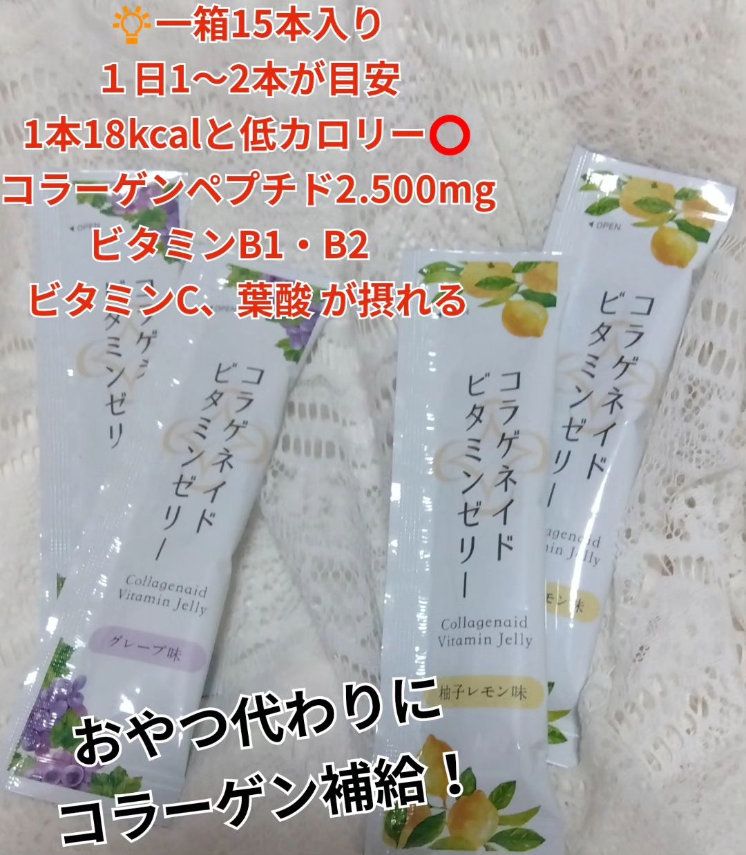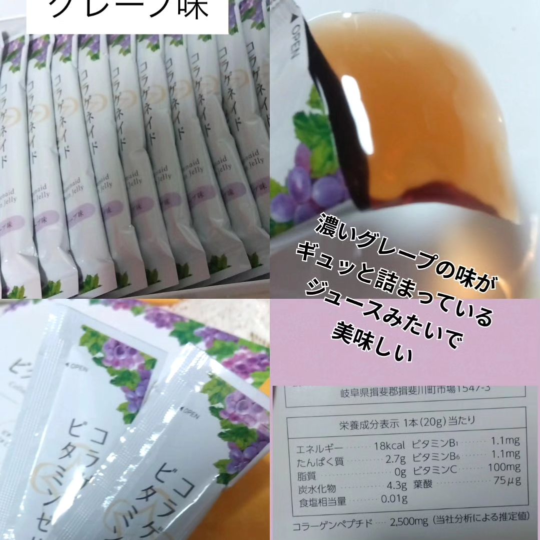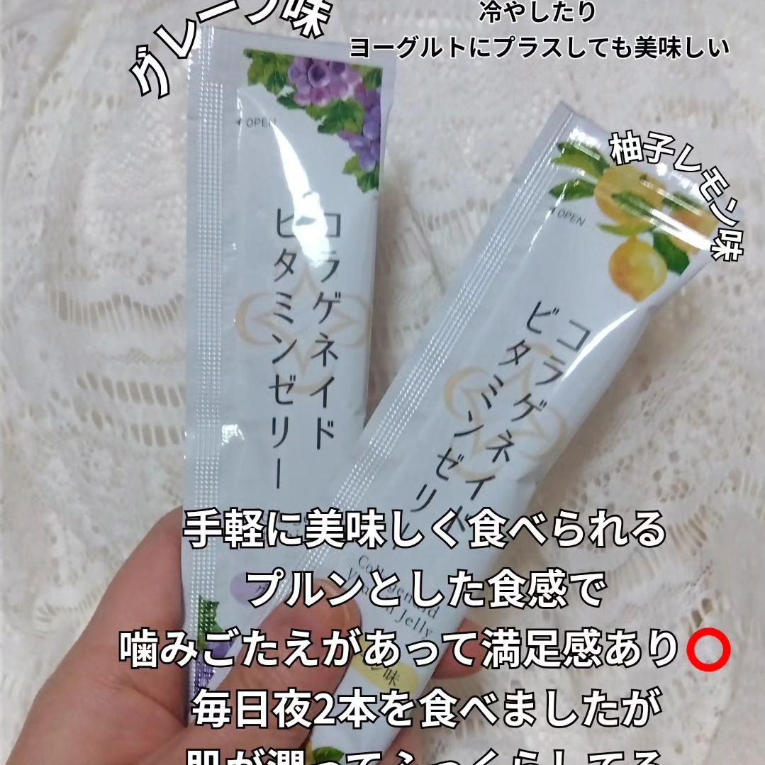 #PR モニプラ様を通して頂きました 新田ゼラチンダイレクト様[コラゲネイドビタミンゼリー 柚子レモン味・グレープ味] おやつ代わりにコラーゲンを補給できるスティックタイプのゼリー 1本でコラーゲンペプチド2500mg、ビタミンB1・B2、ビタミンC、葉酸まで摂れる 一箱15本入り、1日1本〜2本が目安です! 柚子レモン味は、さっぱりしていてくせがない グレープ味は、グレープの味が濃くてジュースみたいに美味しかったです どちらもコラーゲン独特のくせがなく食べやすいですし、ゼリーの食感に噛みごたえがあって満足感もあります 🌼 一箱食べきった感想↓ 7枚目の比較画像 15日前とかいてますが、食べ始めたのは大体2週間くらい前で、現在の画像は食べきった日の次の日に撮ったものです 1日2本を食べました 肌が乾燥しやすいのですが、日中などに肌がぱさつくことが減ったと思う 夜に2本食べてるのですが、翌朝の肌がしっとりしてるし、化粧ノリも良くなった また、7枚目の画像が少し荒いのてわわかりにくいのですが頬の毛穴がちょっとふっくらして目立ちにくくなったかなと思う 🌼 前に飲むコラーゲンスティックも試させて頂いたのてわすが、新田ゼラチンダイレクト様のコラーゲンは確かに効果があるなと実感しました コラーゲンは本当に良いものを探して色々と購入しているのですが、今回コラゲネイドビタミンゼリーを試すことができて嬉しかったです ありがとうございます🙇 #PR #新田ゼラチン #コラゲネイドビタミンゼリー #おやつ代わりにコラーゲン補給 #monipla #nittagelatin_fan